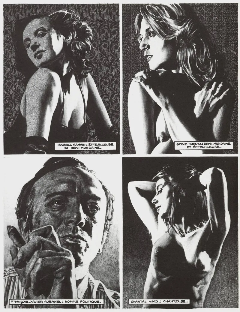 La même mise en place est la même que pour Magnum Song (paru quelques mois plus tôt) avec une présentation en règle des protagonistes à l'œuvre : un sadique, un maître chanteur, un officier de police, un homme politique et quelques effeuilleuses parisiennes...
